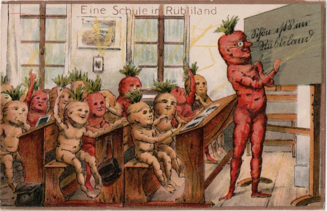This page is a collection of early 20th century Swiss and German anthropomorphic vegetable postcards.