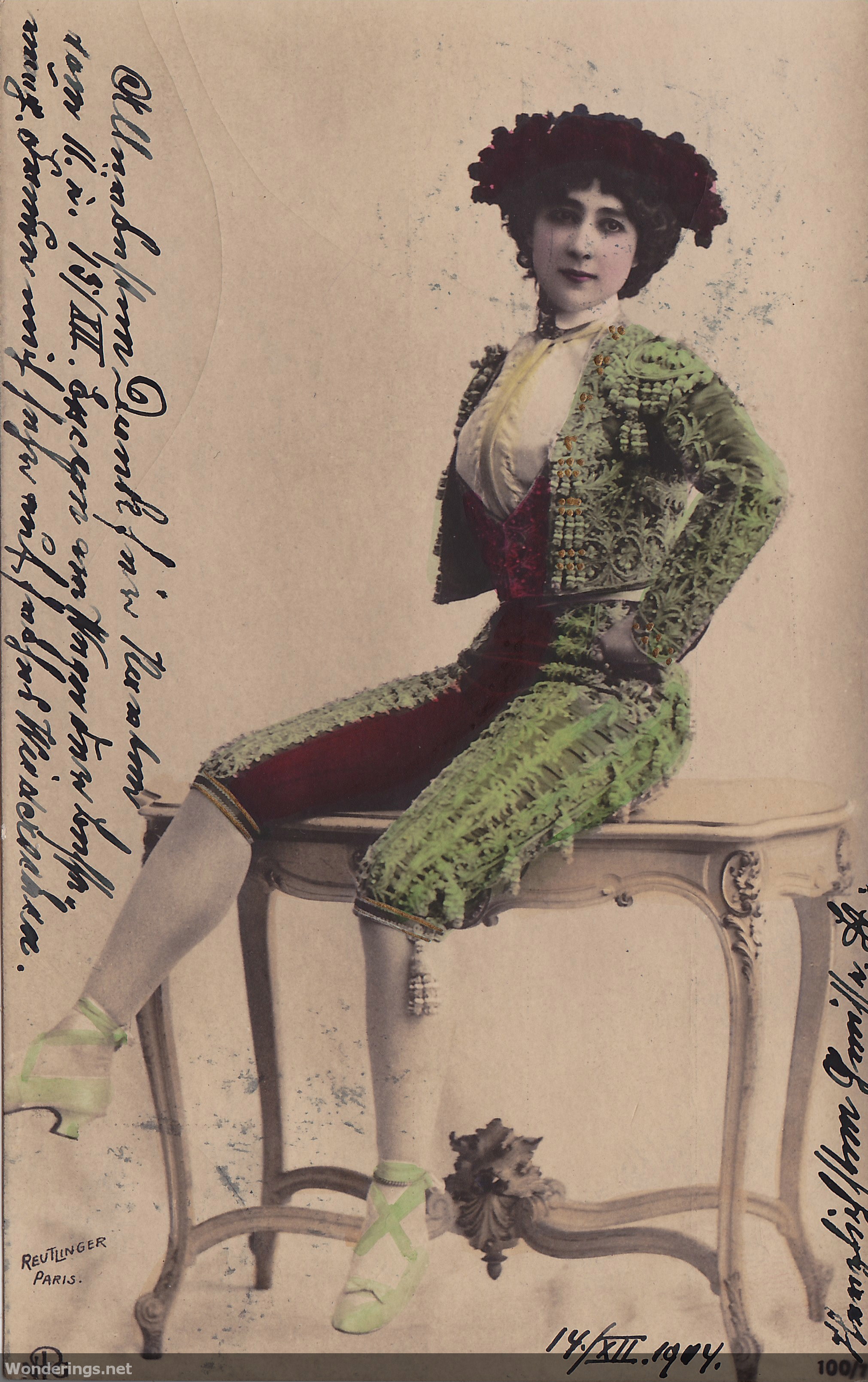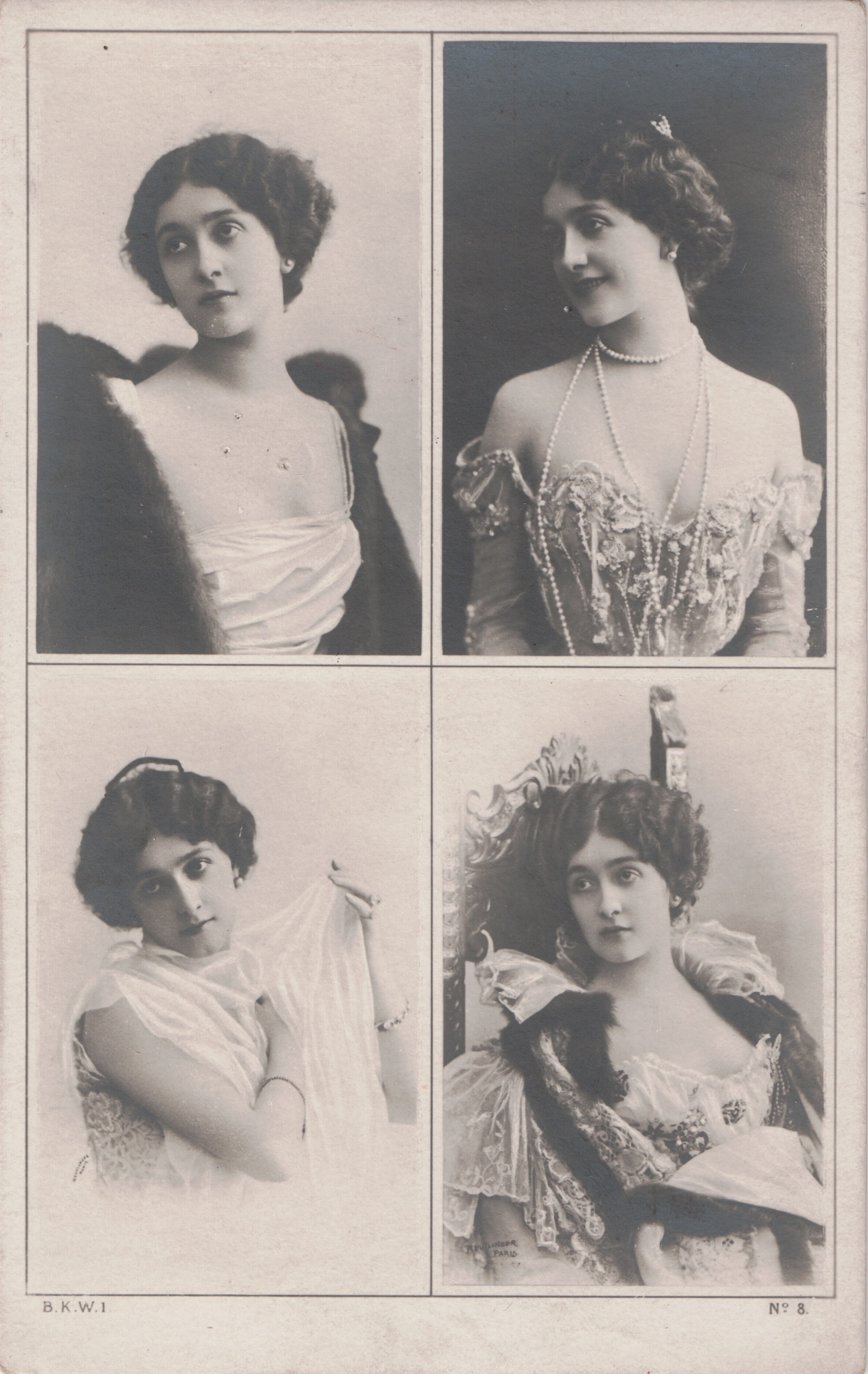 One way to approach the Reutlinger postcards is from the perspective of the models (really, celebrities) featured on the cards, many or most of whom appear to have been well known singers, dancers, and actresses of the day.