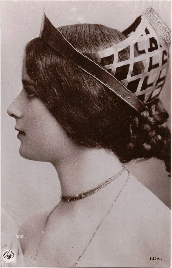 Another popular model, Lina Cavalieri, was born North of Rome and came to Paris and sang in music halls and later in opera. Her wikipedia page has more information and images.  Also, I recently discovered via the MessyNessy Chic blog that Cavalieri was the model for Piero Fornasetti’s famous plate series ‘Tema e Variazioni’.  Check out the whole story there; the blog post also has great biographical information about Cavalieri.
